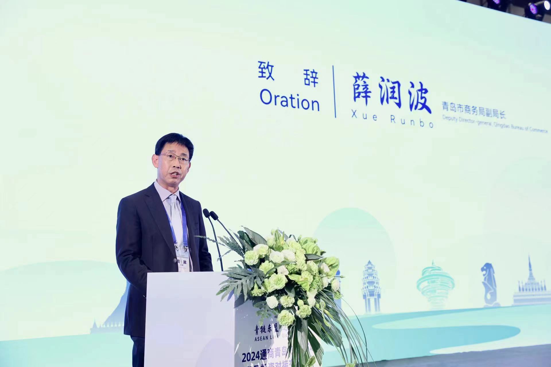 此次活动由青岛市商务局指导,青岛市贸易发展服务中心主办,以“青链东盟,达畅全球”为主题,旨在促进青岛与东盟国家在贸易和投资方面的深度合作,搭建双方企业直接沟通的平台。各区(市)商务主管部门,有关商协会、相关产业园区及我市企业代表等300余人参会。