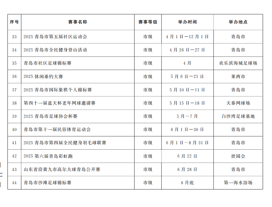 5.培育自主品牌赛事。发挥区位优势,依托上合示范区、沿黄流域高质量发展、胶东经济圈等国家、省区域发展战略,结合历史文化底蕴和自然生态资源,围绕山地、水(海)上、冰雪等具有时尚引领性、新兴体育项目,做大做强传统品牌赛事,培育具有青岛特色的自主品牌赛事,展现青岛城市形象,扩大城市影响力。(责任单位:市体育局、市财政局)