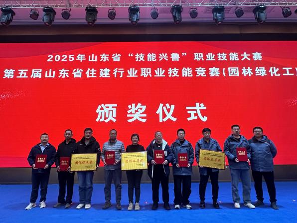 11月26日—28日,由山东省住房和城乡建设厅主办的2025年山东省“技能兴鲁”职业技能大赛—第五届山东省住建行业职业技能竞赛(园林绿化工)在潍坊市举行。我市代表队由3支队伍9名参赛选手组成。经过笔试及实操的激烈角逐,最终我市参赛团队荣获团体二等奖、三等奖、优秀奖各一项,个人一等奖、三等奖各一项,青岛市园林和林业局获优秀组织奖。此次竞赛不仅是一次技能的比拼,更是各地市园林绿化行业交流互鉴的重要平台,通过与全省同行在修剪技艺等方面的深入切磋,拓宽了专业视野,提升了实操水平,实现在竞赛中学习、在交流中进步的参赛目标,充分展现了我市园林林业技能人才队伍不断提升的综合实力与良好风貌。