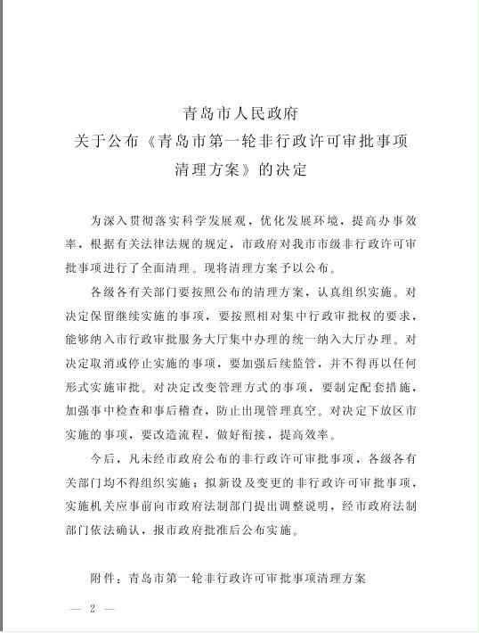 青岛市人民政府关于公布《青岛市第一轮非行政许可审批事项清理方案》的决定(已废止)